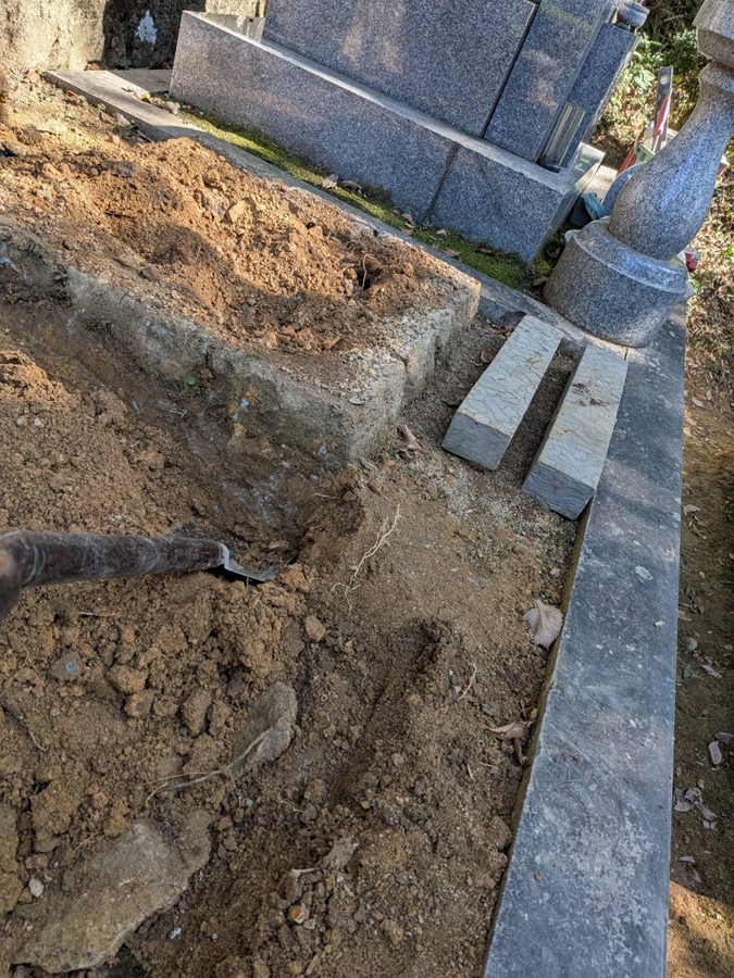 今回は古墓の整理、代々墓の据直しを刺せて頂きました。