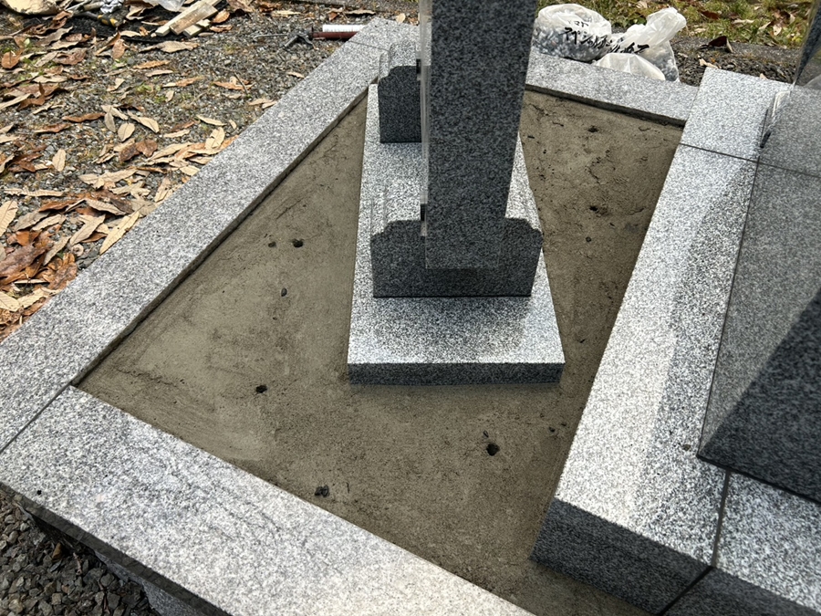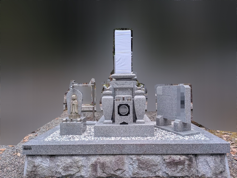 8寸3重台布団台付、墓誌、水子地蔵、塔婆立てがバランスよく据付できました。