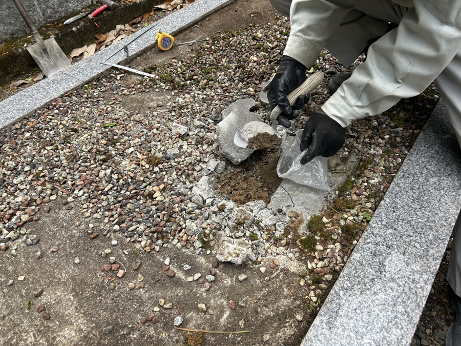 水子地蔵の下の土を新しく移設するところに移しました。