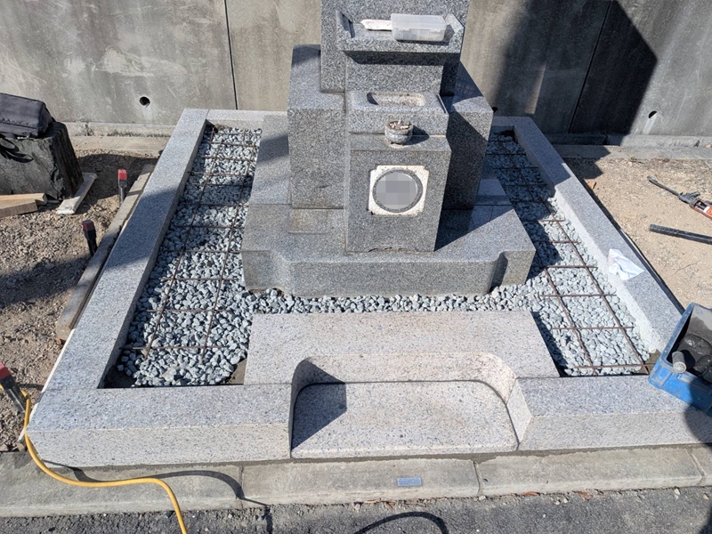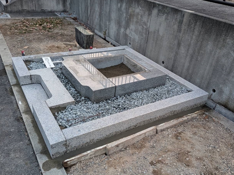 今回引っ越しされるお墓は霊園の基準の高さがオーバーするため一番したの台を低くして基準ギリギリで据付しました。