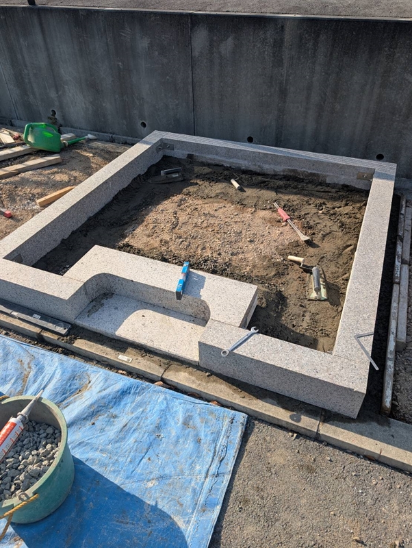 今回引っ越しされるお墓は霊園の基準の高さがオーバーするため一番したの台を低くして基準ギリギリで据付しました。
