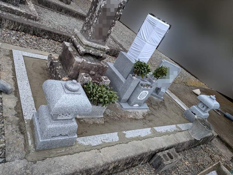 今回はブロックで区画されてる墓地に新規8寸石塔、灯篭を設置して古墓石を横に移設させていただきました。